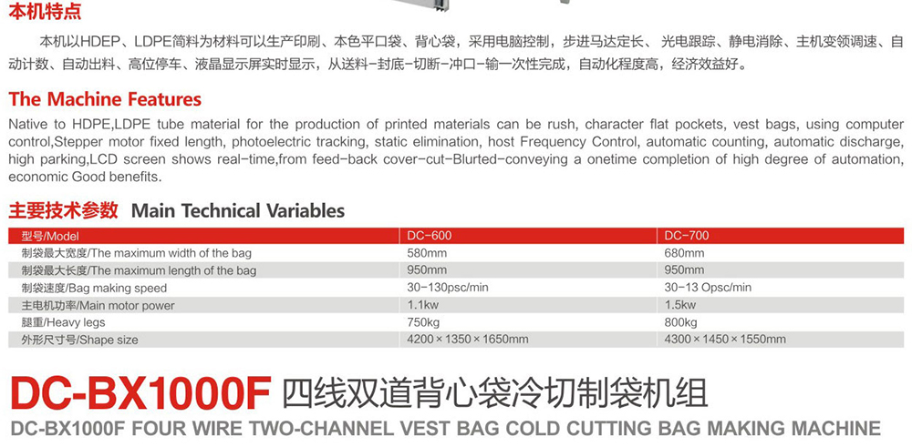 DC-BX1000F四線雙道背心袋冷切制袋機組